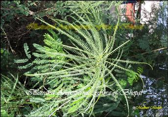 Armed, glabrous shrubs or low tree, up to 4-6 m tall; branches tomentose, spinous, woody, drooping; leaves bipinnate, primary rachis, ending in long, stout spine; pinnae or secondary rachis, 2-3 pairs, long, striate, flattened like phyllodes; leaflets, minute 40-50 pairs, subopposite, oblanceolate, entire, obtuse; stipules spinescent; flowers few or many in axillary or terminal, lax racemes, shorter than the leaves; calyx deeply cleft, tube short, lobes 5, lanceolate, subequal, valvate, with subbasal disk; petals 5, yellow, exserted, obovate to suborbicular, subequal, claw short, very long in upper one; stamens 10, free, included, villous, filaments subequal, anthers versatile; ovary sessile or subsessile, many ovuled, style filiform; pods 5-10 cm long, flat, copper brown in colour, moniliform or slightly constricted between seeds, turgid, dry, dehiscent, narrowly winged on both sutures; seeds 3-6, compressed, brown. |